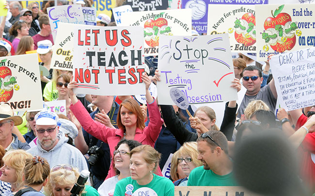 “As teachers, we know tests are used for learning, and not as weapons of punishment,” Powell said.