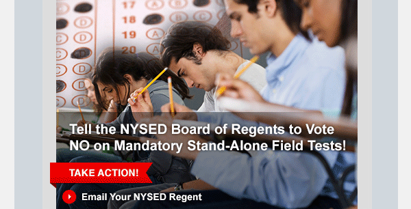 Take action now at the NYSUT Member Action Center to tell the New York State Board of Regents to vote NO on mandatory stand-alone field tests!