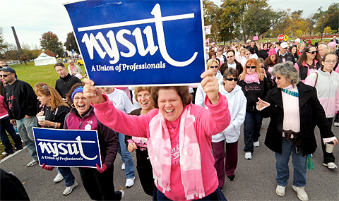 NYSUT members from western New York to Long Island lace up their sneakers to Make Strides Against Breast Cancer each fall "because we believe in something big and we believe we can be the difference," NYSUT Vice President Maria Neira told the crowd in Albany's Washington Park.