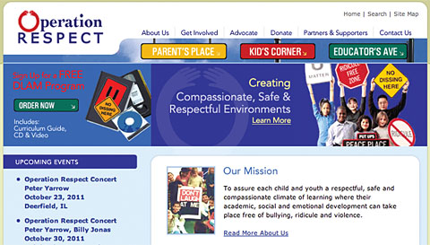 Visit operationrespect.org and click on "Sign up for a Free DLAM packet" to register and order a copy of the Don't Laugh At Me program of your choice which will be delivered free of charge courtesy of the McGraw-Hill Companies. Through music, video and classroom activities, the programs help sensitize children to the painful effects of behaviors that too often are accepted as necessary rites of passage in childhood — ridicule, disrespect, ostracism and bullying.