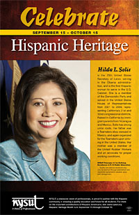 Labor Secretary Hilda L. Solis, the first Hispanic woman to serve in the U.S. Cabinet, is featured on this year's NYSUT poster that celebrates the important contributions of Hispanic Americans.