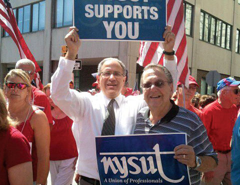 NYSUT officers — Executive Vice President Andy Pallotta, Secretary Treasurer Lee Cutler and Vice President Katheen Donahue — joined union staffers and NYSUT members at recent rallies supporting striking workers. More are planned.