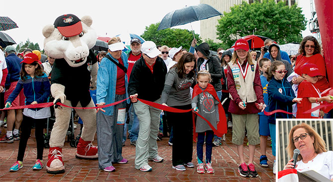 NYSUT President Karen E. Magee, bottom right, chair of the Capital Region Heart Walk, counts down to the start of the June 11 walk, which drew nearly 1,300 walkers — including many NYSUT members and staff — and raised almost half a million dollars for the American Heart Association. Photos by Marty Kerins Jr.