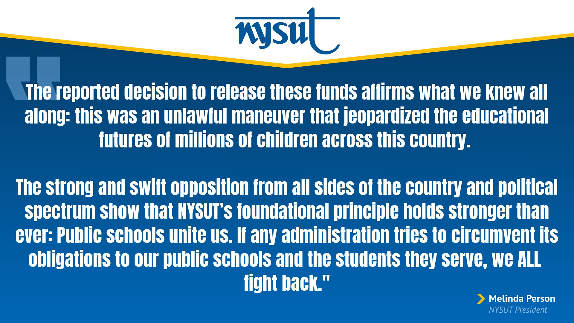 July 25, 2025 NYSUT response to reports that ESEA funding will be released Source: NYSUT Media Relations