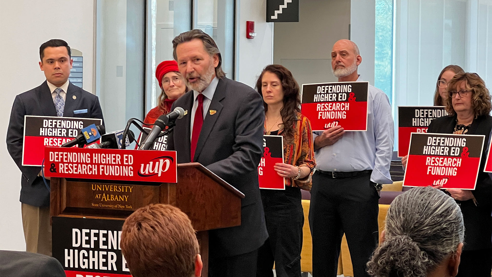 March 28, 2025 UUP advocates against threats to federal research funding Author: Emily Allen Source: NYSUT Communications