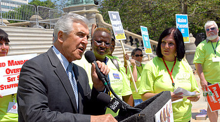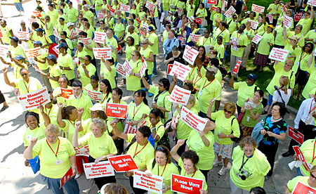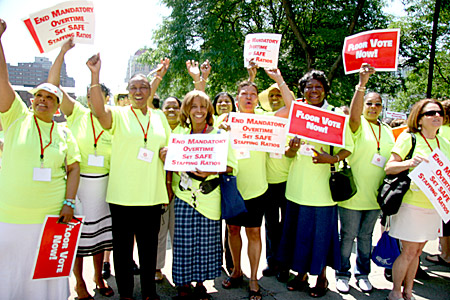 June 12, 2008 Health care workers rally at the Capitol to end mandatory overtime for nurses Source: NYSUT Newswire