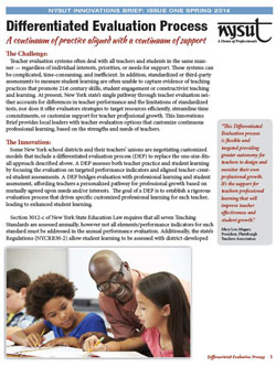 At present, New York state’s single pathway through teacher evaluation neither accounts for differences in teacher performance and the limitations of standardized tests, nor does it offer evaluators strategies to target resources efficiently, streamline time commitments, or customize support for teacher professional growth.