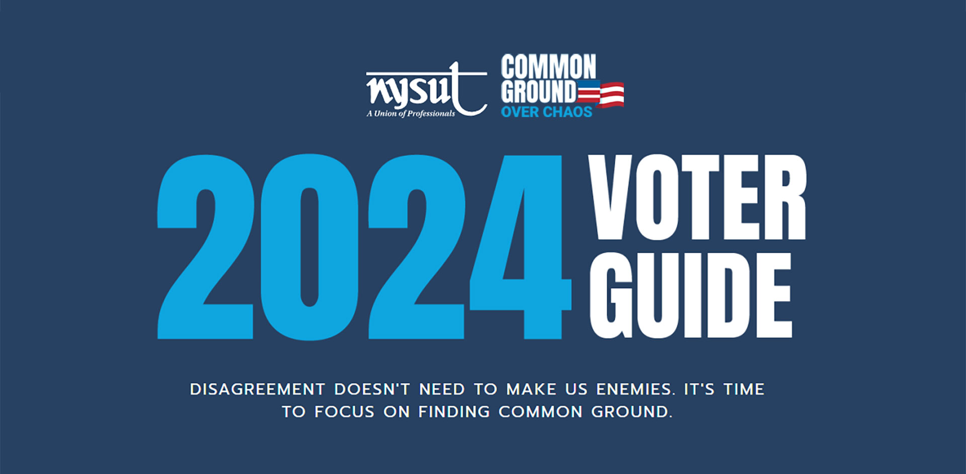 DEAR NYSUT MEMBERS: We’re pleased to provide the 2024 Voter Guide so YOU and YOUR VOTE can help elect pro-public education, pro-labor candidates in Albany and Washington, D.C., in the Nov. 5 General Election. In a divided nation, we need to come together around issues that unite us — like our public schools.